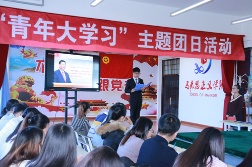 活动在《光荣啊中国共青团》歌声中拉开了序幕。有6位青年团员结合自己学习生活实际分别以《与时代共进,做有志青年》、《坚定理想信念,不忘责任担当》、《逐梦新时代,迎接新挑战》、《我与新时代》、《听党话跟党走,与祖国共奋进》、《牢记使命与责任,与青春同行》为题作了主题发言,他们认为作为思想政治教育专业的学生,在“青年大学习”行动中应该走在前列,积极主动地学习宣讲好习近平新时代中国特色社会主义思想和党的十九大精神,增强“四个意识”,牢固树立“四个自信”;当代青年是中国特色社会主义事业的建设者和接班人,要坚定不移听党话、跟党走,以实际行动,争做“爱国、励志、求真、力行”的新时代优秀青年。